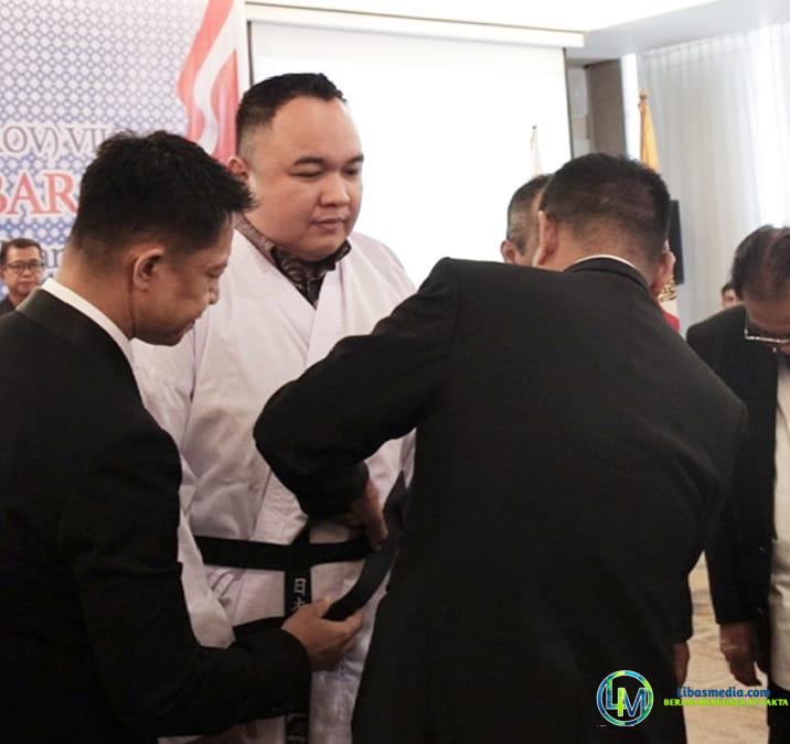 Selanjutnya secara organisatoris, Nanda Satria selaku Ketua Pengprov Lemkari Sumbar 2025-2030 dipakaikan Sabuk Hitam oleh anggota Dewan Guru Letkol.Inf Arie Marzuki (DAN V) bersama Ketum PB. Lemkari disaksikan H. Leonardy Harmainy (DAN VIII), Firdaus Ilyas (DAN VII.