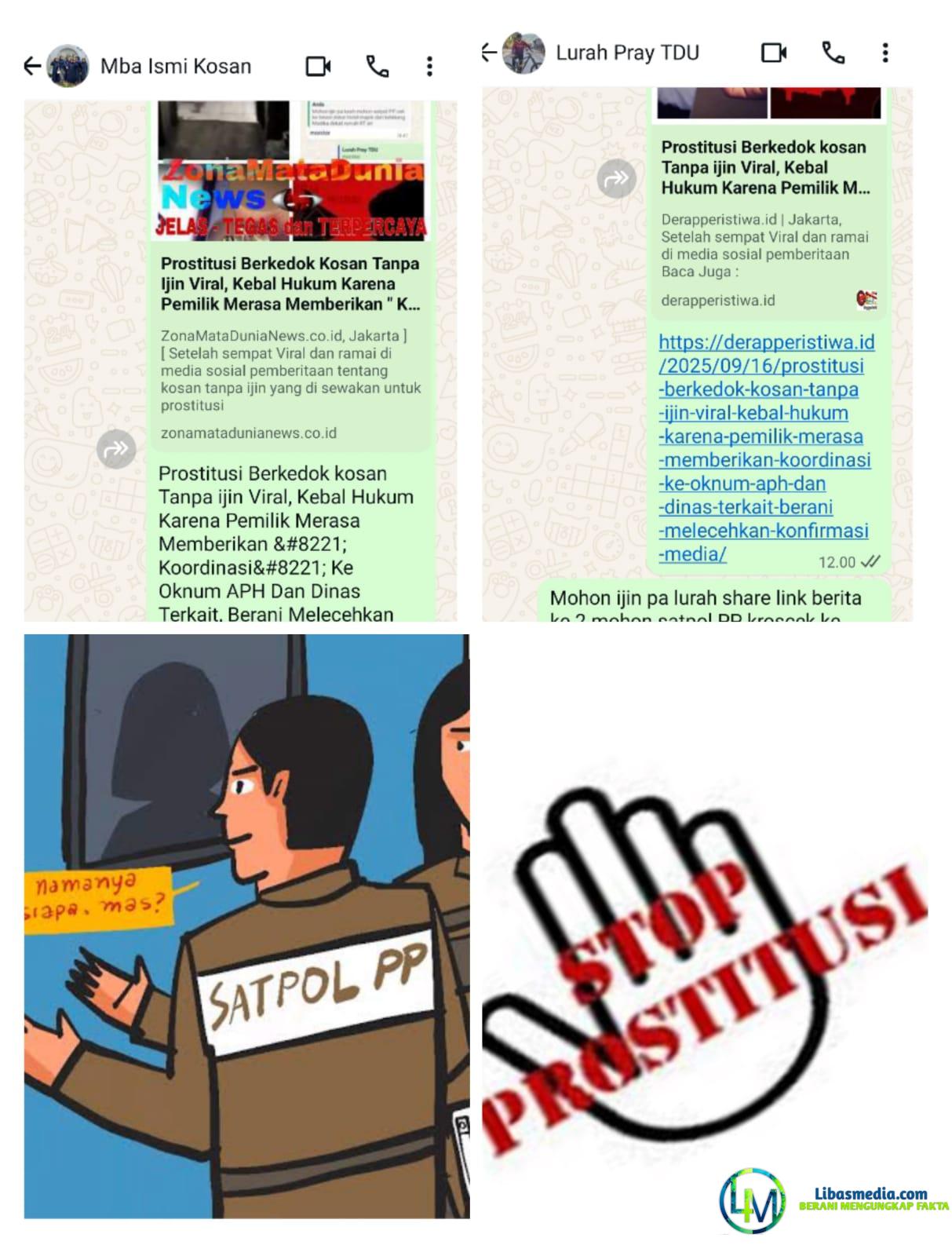Lurah Tanjung duren Utara Pray sudah dua kali di berikan laporan dan share link berita oleh tim 9 investigasi media bahwa ada kosan di RT 05 RW 01 dan RT 06 RW 01 tanpa ijin dan di gunakan untuk prostitusi terselubung, pengelola dikenal dengan sebutan mba is. Sampai hari ini Selasa malam 16 September 2025 belum ada crosscek ke lokasi dari satpol PP kelurahan TDU seperti jawaban pa lurah bahwa hari ini sudah TDU bahwa sudah mengarahkan satpol PP untuk cek lokasi. Ini menimbulkan pertanyaan besar di masyarakat bahwa tidak adanya pengecekan oleh satpol PP kelurahan Tanjung duren Utara karena Di duga sudah menerima koordinasi bulanan dari mba is. Hal ini perlu di cek kebenarannya.