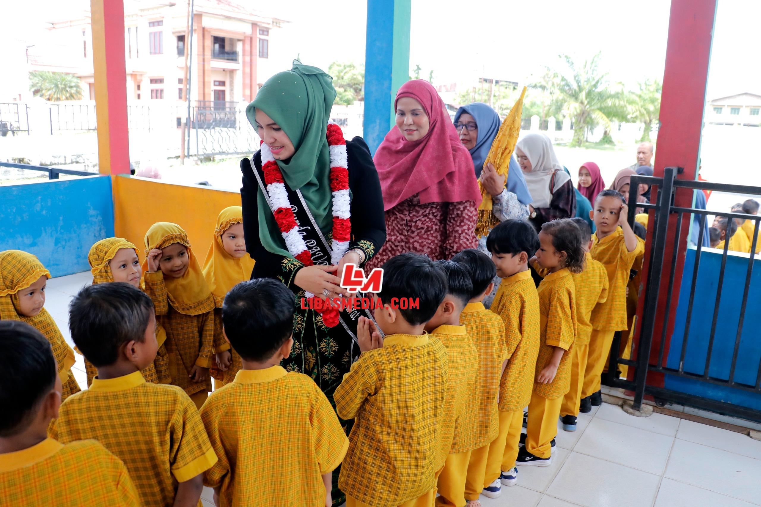 Meulaboh – Bunda PAUD Kabupaten Aceh Barat, Ny Afrinda Novalia menyerahkan bantuan Alat Permainan Edukatif (APE) anak kepada sejumlah sekolah di wilayah setempat pada Kamis (20/11/2025).